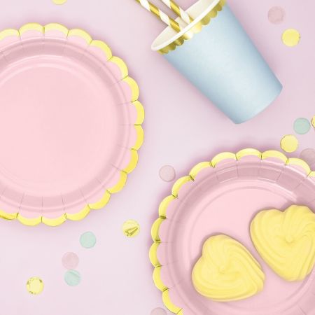 Pour une fête aux tons pastel, ces jolis gobelets en carton de couleur bleu et doré sont vendus par lot de 6 pièces.