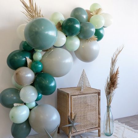Cette superbe guirlande de ballons "eucalyptus" sera parfaite pour décorer une fête tendance.