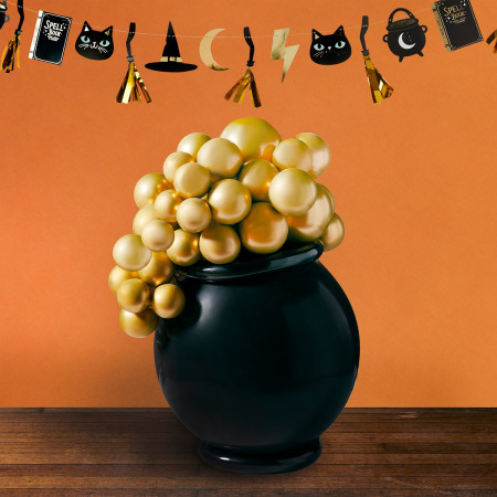 Quelques ballons dorés pour la potion magique, un gros ballon noir et 2 ballons tube pour réaliser le chaudron, ce kit sera parfait pour décorer votre intérieur durant ce mois d'octobre :)