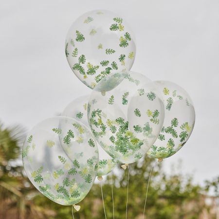 Vous pouvez les gonfler à l'air ou à l'hélium, ils sont remplis de jolis confettis en forme de feuilles vertes.