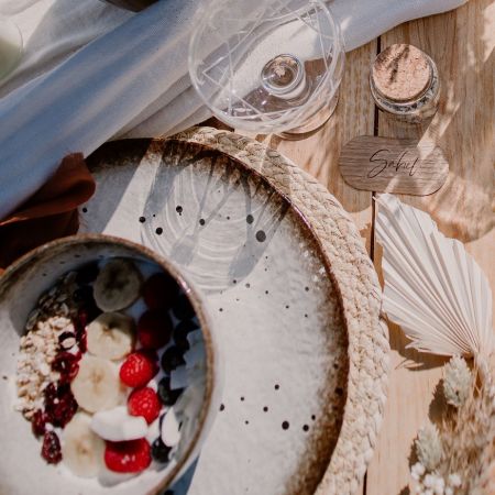 Avec leur forme ovale et leur belle typo manuscrite, ils donneront a votre table une touche bohème qui se mariera très bien avec des fleurs séchées par exemple.