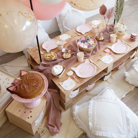 Pour un anniversaire ou une fête sur le thème des petits chats, ces jolis gobelets en carton de couleur rose, blanc et doré sont vendus par lot de 6 pièces.