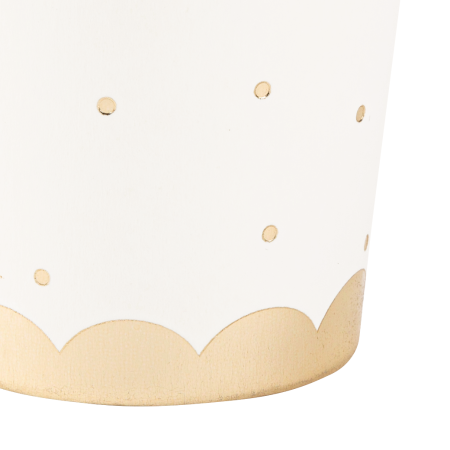 Vendus pas lot de 8 pièces, ces gobelets en papier cartonné blanc sont décorés de petits pois et d'un bord festonné doré.