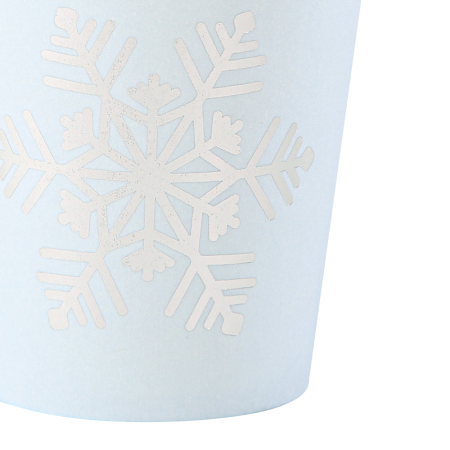 Ces gobelets en carton sont de couleur bleu ciel et argenté, ils seront parfaits pour une fête sur le thème des animaux polaires ou de la Reine des neiges.