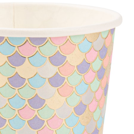 Ces gobelets vendus par lot de 8 pièces sont décorés de jolies écailles pastel et dorées.