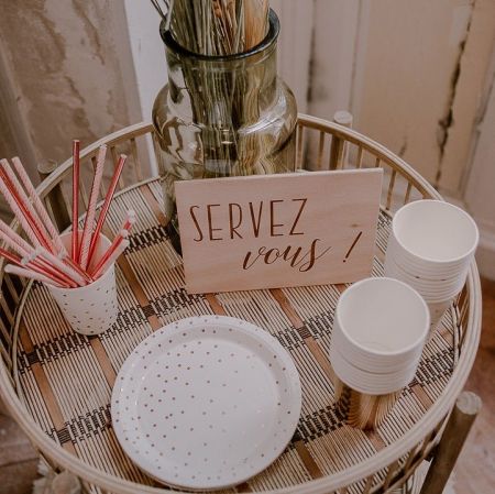 Avec sa typo manuscrite tendance et son message "servez-vous", vous pourrez le placer à une multitude d'endroit ! Devant les cadeaux invités, sur un bar à bonbons, devant des éventails, livret de messe...