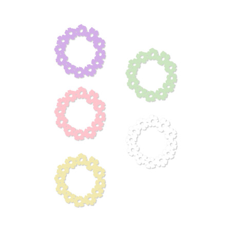 Ces ronds de serviette sont en forme de couronne de fleurs.