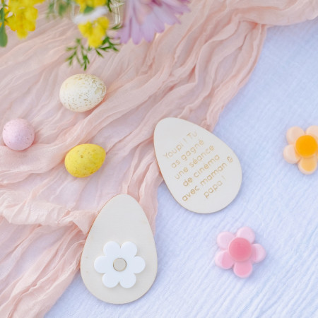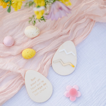 Le but est le même, mais au final, pas de chocolat ! A la place, on vous propose de graver un super petit mot à l'arrière de chaque œuf pour proposer à votre enfant ce que vous voulez : après-midi au parc, activité peinture, soirée crêpes, journée câlins, atelier bracelets, sortie à la mer ...