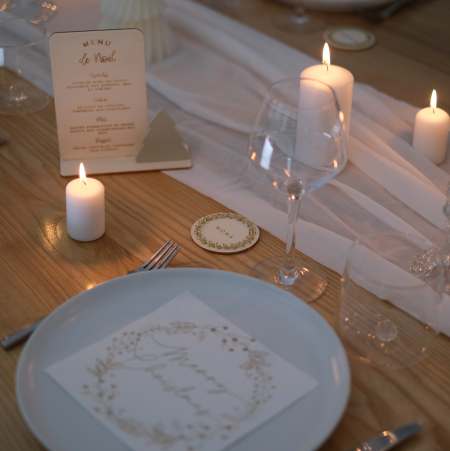 N'oubliez pas de sauvegarder votre personnalisation pour pouvoir l'ajouter au panierDécorez votre table avec ce beau menu de Noël en bois et plexiglas personnalisable.