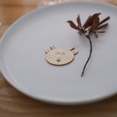 N'oubliez pas de sauvegarder votre personnalisation pour pouvoir l'ajouter au panierDécorez votre table de Noël avec ces jolis marques places en bois en forme de tête de faon trop mignon.