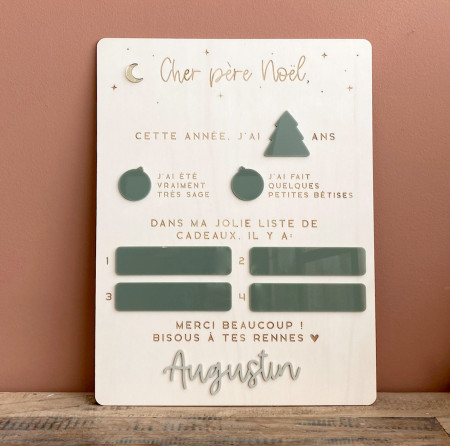 Bien plus qu'une lettre au père Noël c'est une pancarte avec laquelle vous pourrez prendre en photo votre enfant tous les ans. Ainsi, vous le verrez grandir et évoluer en regardant les photos des Noël précédents. Une belle tradition à mettre en place dès cette année !