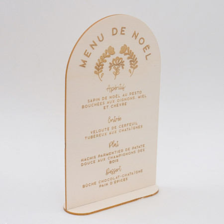 Ce menu en forme d'arche est fourni avec un petit pied à monter afin de tenir debout sur votre table.