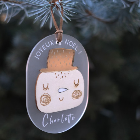 Cette boule de Noël est décorée d'une jolie tête de bonhomme de neige endormi :)