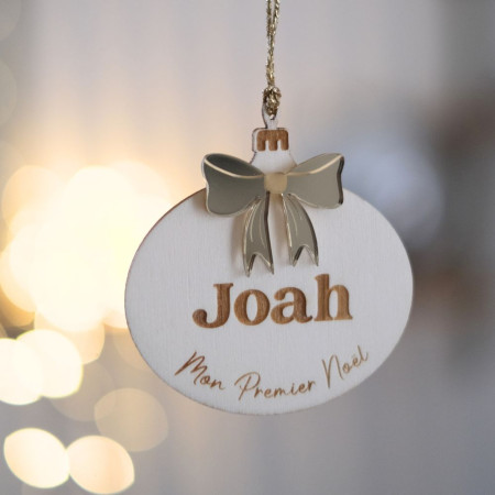 Gravée avec le prénom ou le mot de votre choix, cette petite décoration devient un souvenir unique à ressortir chaque année. Sa forme intemporelle et son design minimaliste s’intègrent aussi bien dans une ambiance traditionnelle que contemporaine. Légère et résistante, elle s’accroche facilement à l’aide d’une ficelle dorée.