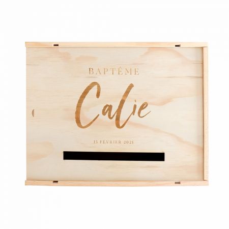 N'oubliez pas de sauvegarder votre personnalisation pour pouvoir l'ajouter au panierAvec sa belle typo moderne effet pinceau, cette urne en bois sera canon pour une décoration de baptême au top de la tendance.
