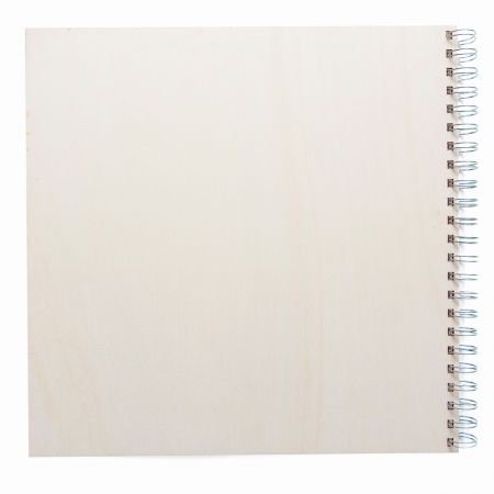 Ce grand livre est composé d'une couverture carré (30 cm x 30 cm) en bois, de 30 feuilles blanches épaisses en papier glacé et d'une reliure en anneaux métalliques.