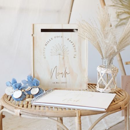 N'oubliez pas de sauvegarder votre personnalisation pour pouvoir l'ajouter au panierCette belle urne en bois sera canon pour une décoration de baptême au top de la tendance.