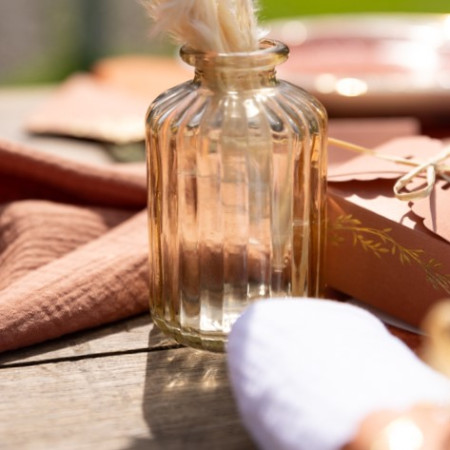 6,20 €Magnifique petit vase en verre de couleur ocre, très tendance, il sera parfait pour décorer vos tables lors d'une fête à l'esprit bohème et vintage.